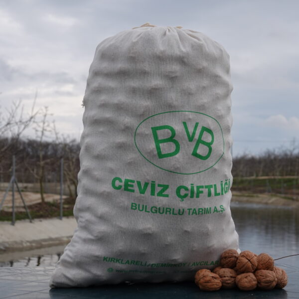 Kutu İçeriği: %100 yerli üretim, 25 kg çuval Chandler kuru kabuklu ceviz.